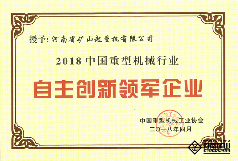 作為本次大會的重要內(nèi)容,大會隆重表彰了2018中國重型機(jī)械行業(yè)“自主創(chuàng)新領(lǐng)軍企業(yè)”及“自主創(chuàng)新先進(jìn)企業(yè)”。河南礦山榮獲“自主創(chuàng)新領(lǐng)軍企業(yè)”榮譽稱號。