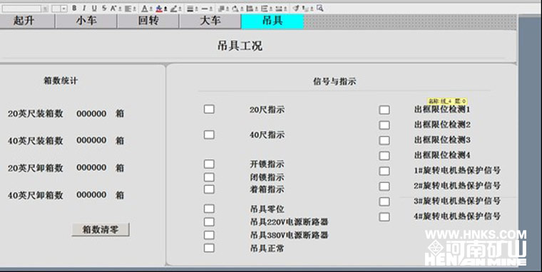 另外該起重機(jī)采用了先進(jìn)的自動控制系統(tǒng),實(shí)現(xiàn)了無人化操作功能,如自動尋箱、自動定位、遠(yuǎn)程監(jiān)控、數(shù)據(jù)實(shí)時傳輸?shù)取F鹬貦C(jī)還配備有專用“黑匣子”,對各個部位故障快速診斷,能以直觀的方式讓操作者了解起重機(jī)的“健康情況”。為客戶管理貨場提供了解決方案和人性化的操作體驗(yàn),在幫助屏幕上附帶了一個專家系統(tǒng),使得整機(jī)反饋能縮小到具體的元件、聯(lián)鎖裝置及開關(guān),并為這一系列數(shù)據(jù)建立了一個數(shù)據(jù)庫,為解決問題提供幫助。