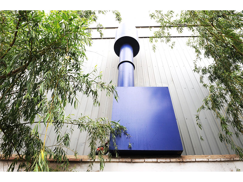 該設備先是利用高壓離心風機的吸力,把含塵氣體壓到裝有一定高度水的水槽中,水浴會把一部分灰塵吸附在水中。經均布分流后,氣體從下往上流動,而高壓噴頭則由上向下噴灑水霧,捕集剩余部分的塵粒。其過濾效率可達百分之85以上。