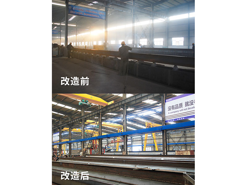 2013年,公司與北京起重運輸機械設計研究院合作,聘請德國起重機專家,根據(jù)人體工程學及工件流程,完成了“單梁起重機柔性化生產線項目”。