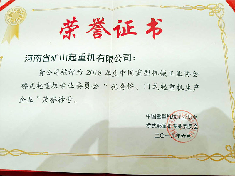 喜訊|河南礦山再次榮獲“門(mén)式起重機(jī)生產(chǎn)企業(yè)”榮譽(yù)稱號(hào)