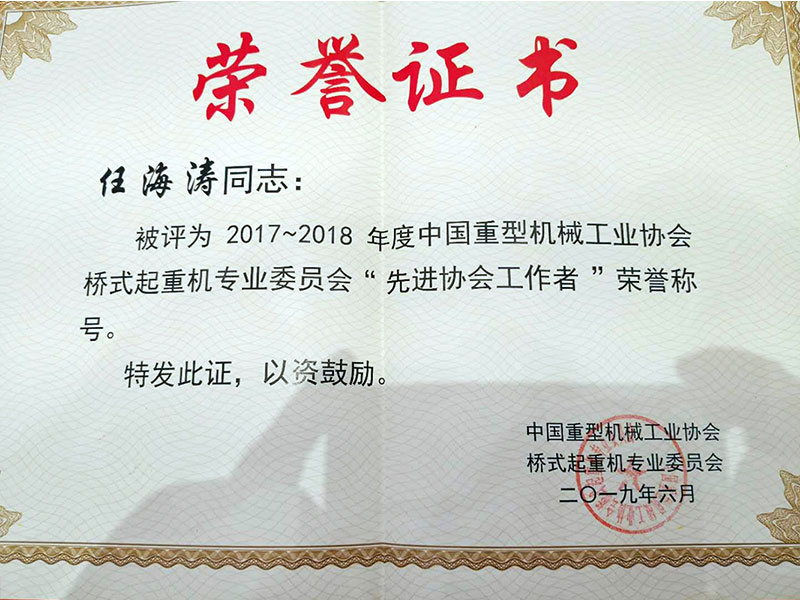 會(huì)上,表彰了2018年度全國(guó)企業(yè)。河南礦山再次榮獲“門(mén)式起重機(jī)生產(chǎn)企業(yè)”榮譽(yù)稱號(hào),此前,公司已多次獲得該項(xiàng)榮譽(yù);公司總經(jīng)理任海濤榮獲2017-2018年度中國(guó)重型機(jī)械工業(yè)協(xié)會(huì)橋式起重機(jī)專業(yè)委員會(huì)“先進(jìn)協(xié)會(huì)工作者”榮譽(yù)稱號(hào)。